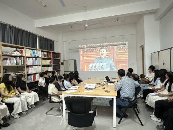 为深入学习贯彻习近平新时代中国特色社会主义思想,缅怀革命先烈,弘扬爱国主义精神,切实增强思政课教师的历史使命感与育人责任感。9月3日上午,马克思主义学院直属党支部在教学楼206会议室开展“纪念中国人民抗日战争暨世界反法西斯战争胜利80周年”主题党日活动。此次活动由马克思主义学院直属党支部副书记田萌主持,全体党员教师参会。