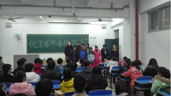 为充分体现学院对家庭经济困难新生的关怀,给家庭经济困难学生安心学习提供后勤保障,使他们全身心的投入到大学的学习和生活中去。12月14日下午,在12号教学楼206教室,化工系开展“新生冬季送温暖”活动。参加此次会议的有化工系主任王新生、团总支书记李玉青、资助专管员黄世江以及化工系2016级全体新生。