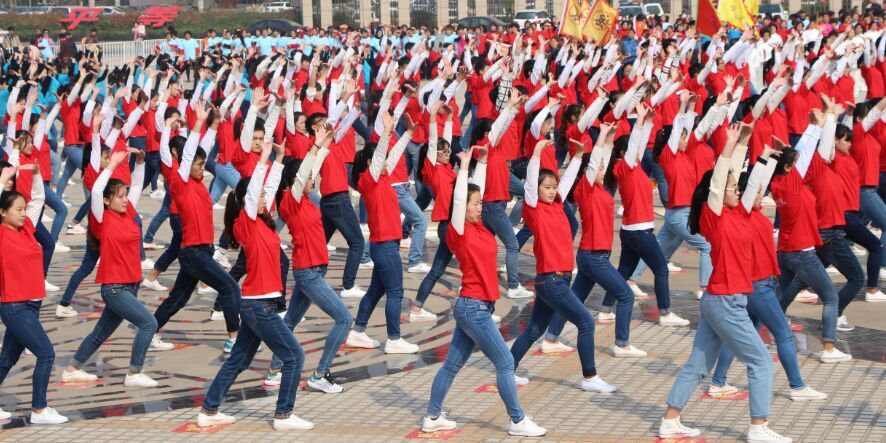 伴随着嘹亮的鼓声,拉开了此次活动的序幕。随后我校学子上场表演《戏曲广播操》。他们个个身姿挺拔、神采奕奕。整齐的衣着,显的朝气蓬勃,优美娴熟的动作更是让人眼前一亮,表演结束后全体师生在此合照留念。