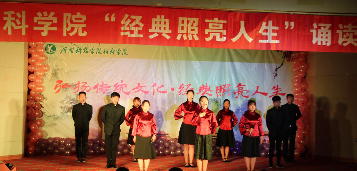 为进一步丰富校园文化生活,营造浓厚的书香校园氛围,借以传承国学文化经典,弘扬民族文化精髓,激发学生的读书和诵读热情, 新科学院团委于2017年4月19日晚在图教201举办了“经典照亮人生”诵读比赛。