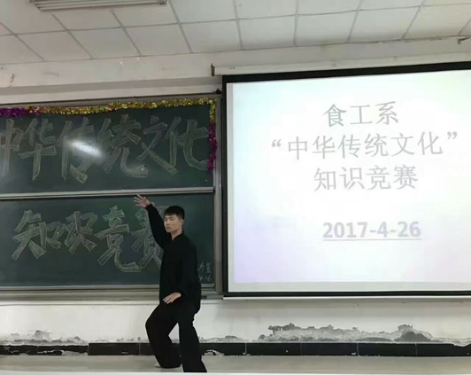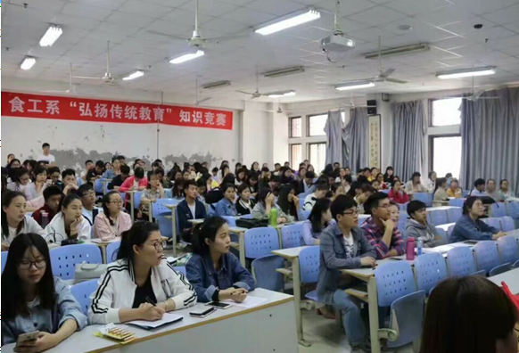 为弘扬中华民族传统文化,深入大学生对我国中华传统文化知识的了解,2017年4月26日中午十二时四十分,食工系在12号教学楼合一举行了第二届弘扬中华传统文化知识竞赛活动,本次活动裁判团有食工系团总支书记刘双华老师及学生会主席团。