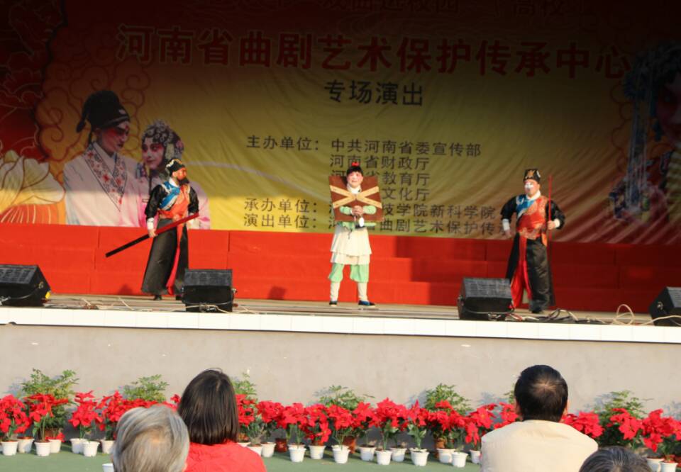由中共河南省委宣传部、省文化厅、省教育厅、省财政厅主办,为贯彻落实《中共中央关于繁荣发展社会主义文艺的意见》、《国务院办公厅印发关于支持戏曲传承发展若干政策的通知》要求,在全省各级各类学校开展戏曲进校园活动,培养学生对优秀传统文化的兴趣,增强学生戏曲艺术素养和审美素养,弘扬社会主义核心价值观。河南省曲剧艺术保护传承中心于11月5日走进河南科技学院新科学院,届时河南省曲剧艺术传承中心将为我院全体师生带来戏曲知识理论讲座,古装名剧:《陈三两》等多个曲剧节目。