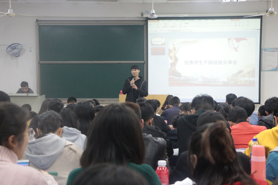 第二位分享的优秀学生干部是朱旭东,他主要用学生干部和自己身边的实际案例,用接地气的口吻,与在场的学生干部做交流。他向大家分享了自己在河南各高校交流学习的体会,指出了现阶段学生干部普遍存在的问题,工作积极性不高,鼓励大家用实际行动证明自己的能力,树立学生干部的良好形象,让大家信服,为今后顺利开展工作打下坚实的基础。最后,此次分享会在同学们的热烈掌声中结束。