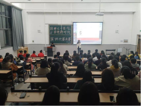 法律系团总支和管理系团总支联合承办了“回眸七十年,奋进新时代”主题演讲比赛。同学们通过讲述革命故事、英雄人物及杰出科学家事迹,切实强化广大学生对革命历史的主体认知和爱国主义情怀。