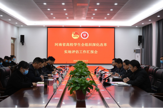 11月26日下午,河南高校学生会组织深化改革评估组时斌一行4人莅临我院开展学生会组织深化改革评估验收工作。党委副书记张慧辉,党政办、学工部、团委相关负责同志,系团总支书记,院学生会、系学生会主团成员在B1-201会议室参加评估工作会议,会议由党委学工部长程海军主持。