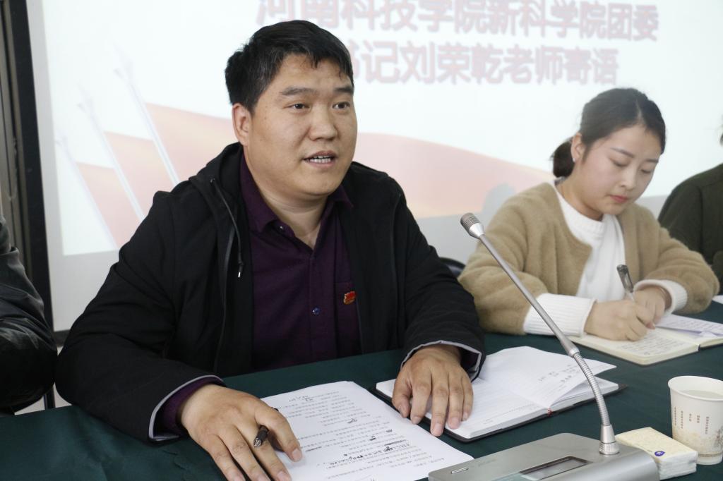 刘荣乾书记对此次青马工程培训做结业寄语,刘书记代表学院祝贺全体学员们顺利毕业,对学员们取得的学习成绩和活动成果表示肯定和鼓励,同时对学员们提出几点希望:第一,树立终身学习党的特色社会主义的理念,强化理论学习;第二,增强服务同学的意识,锤炼优良作风;第三,学会管理时间,工作学习两不误,争做优秀学生干部。