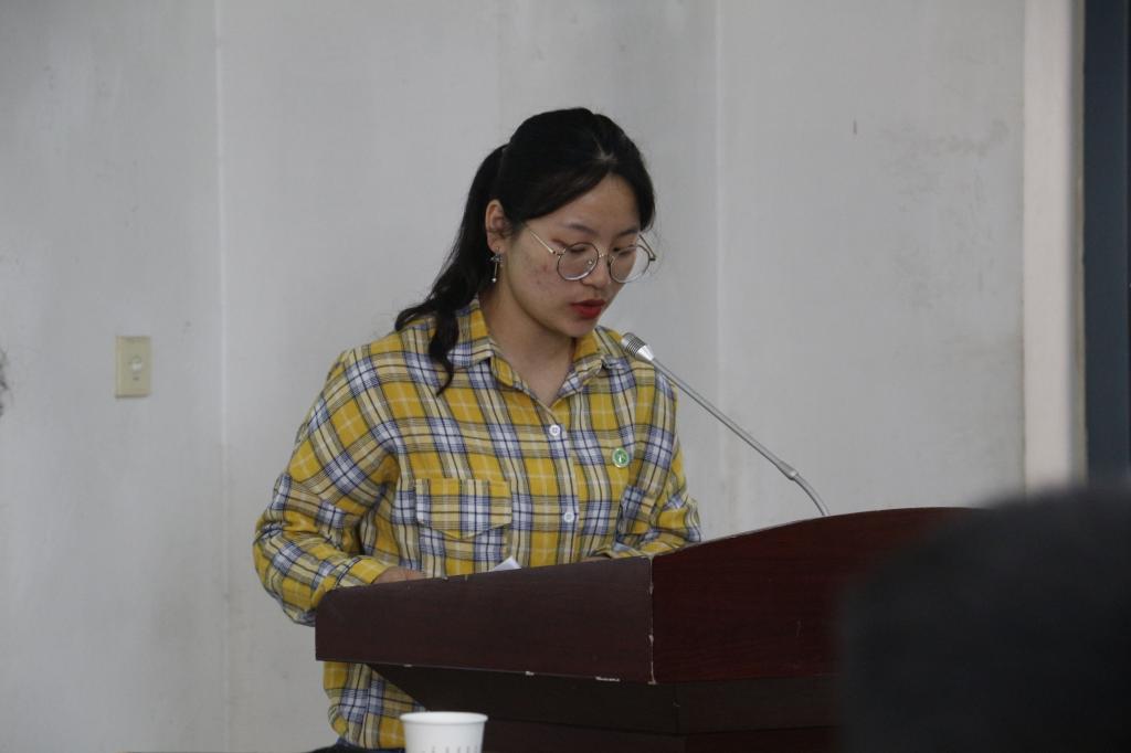 中午十二时半,青马工程结业仪式在庄严的国歌中拉开了序幕。首先是优秀学生代表邢玲玲发言,她以“实践中放飞青春梦想”为主题,从学习是成材之基和实践是使命之始两个方面陈述她对此次青马工程培训的领悟。院学生会团委副书记张婧斐带领大家重温入团誓词。铿锵的誓言,让所有人的精神在这一刻得到新的砥砺,思想得到新的提升。