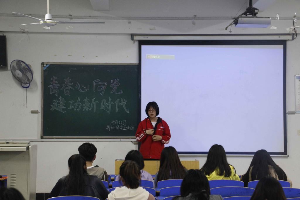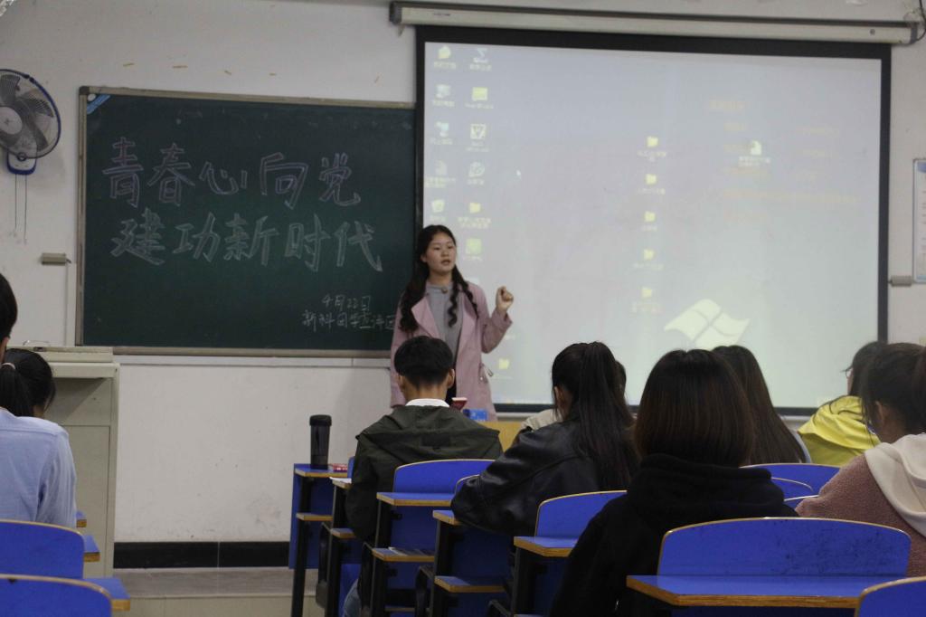 2019年4月22日晚上6点,新科团学宣讲团在12号楼216举行了“青春心向党,建功新时代”为主题的演讲比赛复赛。参加此次比赛的有各系评选出的优秀代表,由宣讲团部分队长、副队长担任评委。
