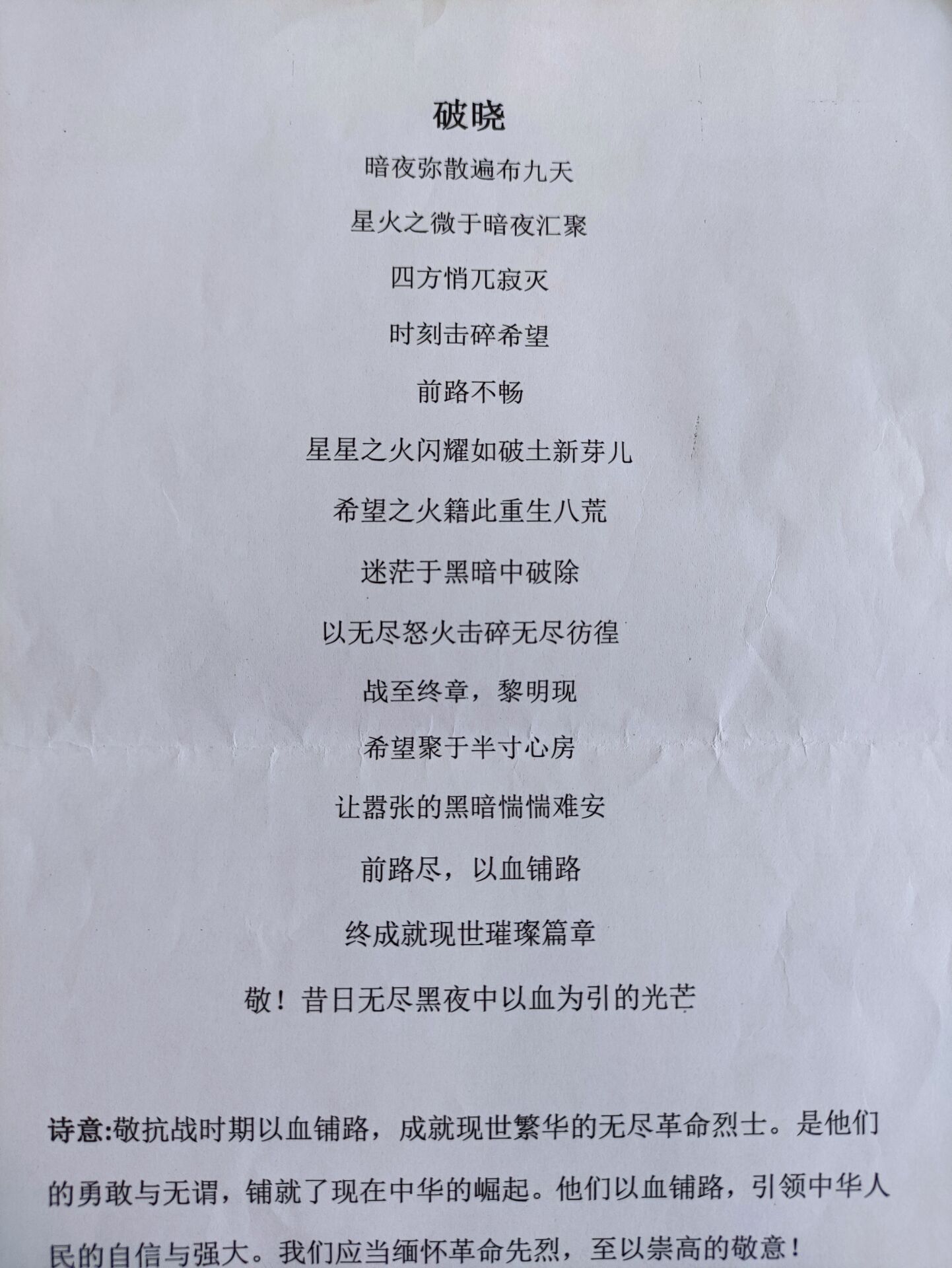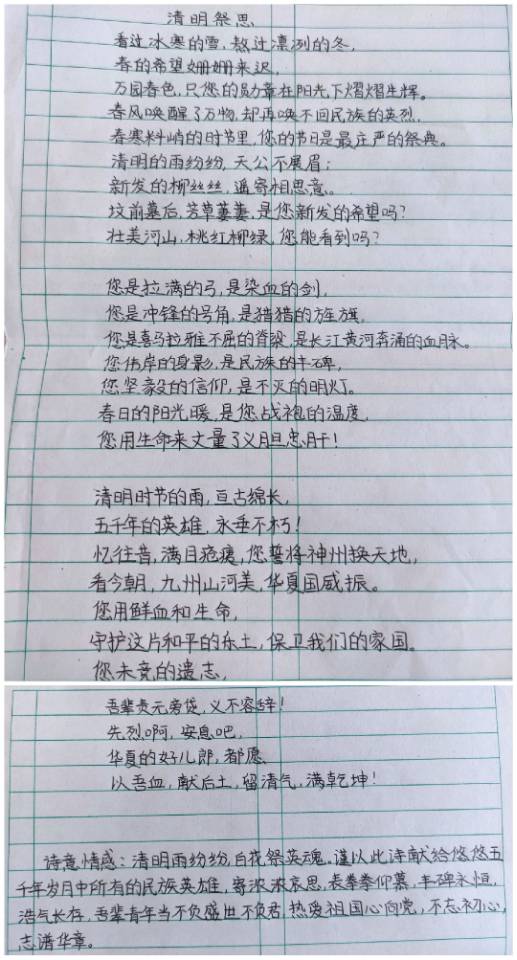 此次活动中,全体师生踊跃参加,同学们在网上为革命先烈们敬献花篮,并写下自己对英烈们的诚挚留言。活动期间,同学们进行诗集创作,表达对先烈们的崇拜和敬重。制作短视频,以记者视角跟人物进行隔时空对话、角色扮演、从逝者的角度来表达情感等等形式,进一步缅怀革命先烈为后代们所做出的奉献。