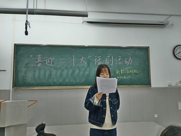 “沉醉百年采茶调,衣襟总带黄梅香。诸君漫说登场好,曲部风流斗巧妆。”由新韵话剧社举办的话剧表演,以热情饱满的情绪感染学生,调动了学生们的爱国热情。