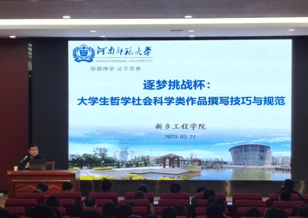 为进一步引导学生积极学习挑战杯作品撰写技巧与规范,营造浓厚的创新氛围,打磨出具有代表性的优秀作品,3月27日下午,我校团委在X2学院楼报告厅举办“挑战杯”专题讲座。本次活动邀请到河南师范大学社会事业学院副院长海龙教授担任主讲人。各学院团总支书记、挑战杯参赛团队指导教师、参赛学生及对创新创业感兴趣的同学共计二百余人参加本次讲座。讲座由校团委组织与实践科科长贾路路主持。