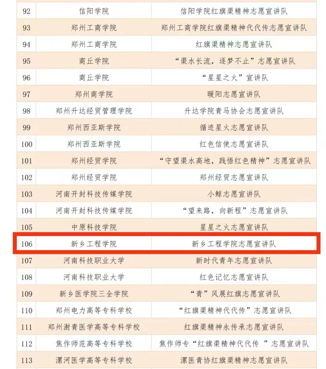 为动员全省大学生学习、传承、弘扬红旗渠精神,根据《关于开展“牢记嘱托精神永在——红旗渠精神代代传”主题教育实践活动的通知》要求,省委宣传部、团省委开展河南省大学生“红旗渠精神代代传”志愿宣讲活动。经过一系列积极的准备工作,宣讲队的同学们个个发挥出色,我校永利23411集团官网志愿宣讲队成功入选河南大学生“红旗渠精神代代传”志愿宣讲队。