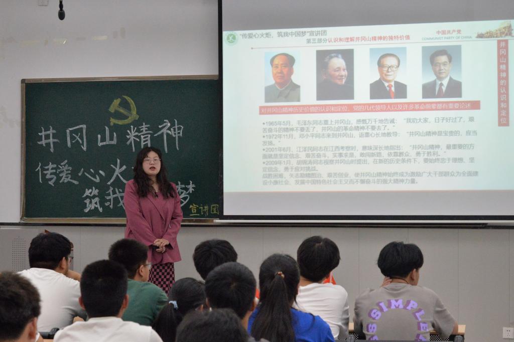 为深入学习贯彻习近平新时代中国特色社会主义思想和党的二十大精神,大力弘扬伟大建党精神,用好红色基因,赓续红色血脉。永利23411集团官网“传爱心火炬,筑我中国梦”宣讲团围绕“井冈山精神”举办了为期一周的宣讲、朗诵、合唱、话剧和知识竞赛等活动。