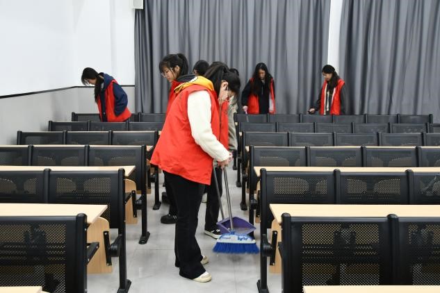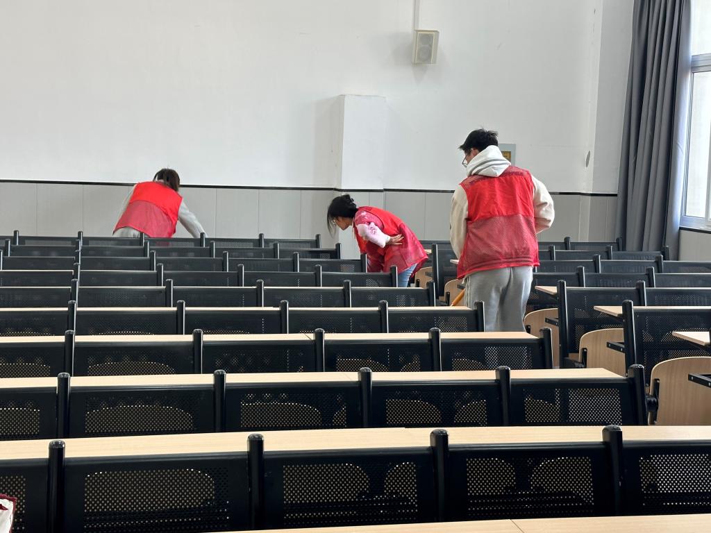 文法学院在本次项目中开展“共建清洁校园,共享美好环境”为主题的校园卫生清扫活动。在本次活动中,志愿者们通过摆放桌椅、打扫教室卫生等方式为同学们营造了一个良好的学习环境,并通过实际行动弘扬了志愿服务精神,推动了校园精神文明的建设。