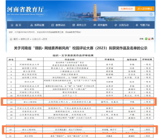 近日,由省教育工委、省网信办、省教育厅等主办的“领航·网络素质新风尚”校园评论大赛落下帷幕。我校图书信息中心、宣传部、团委等部门精心组织校赛后推报的4个作品分别荣获“领航·网络素质新风尚”校园评论大赛“组织—文字类二等奖”、“个人—文字类三等奖”、“组织—创意类三等奖”。