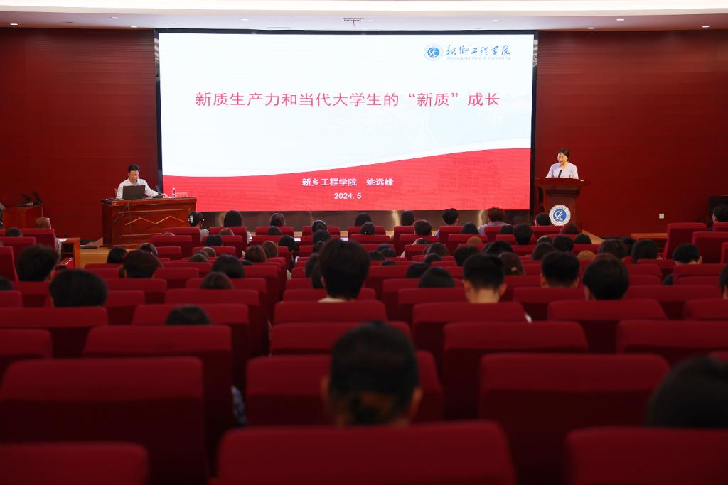 5月11日下午,校党委书记姚远峰教授在学院楼报告厅为我校第三期“青马工程”培训班学员讲授了《新质生产力和当代大学生的“新质”成长》的专题思政课。