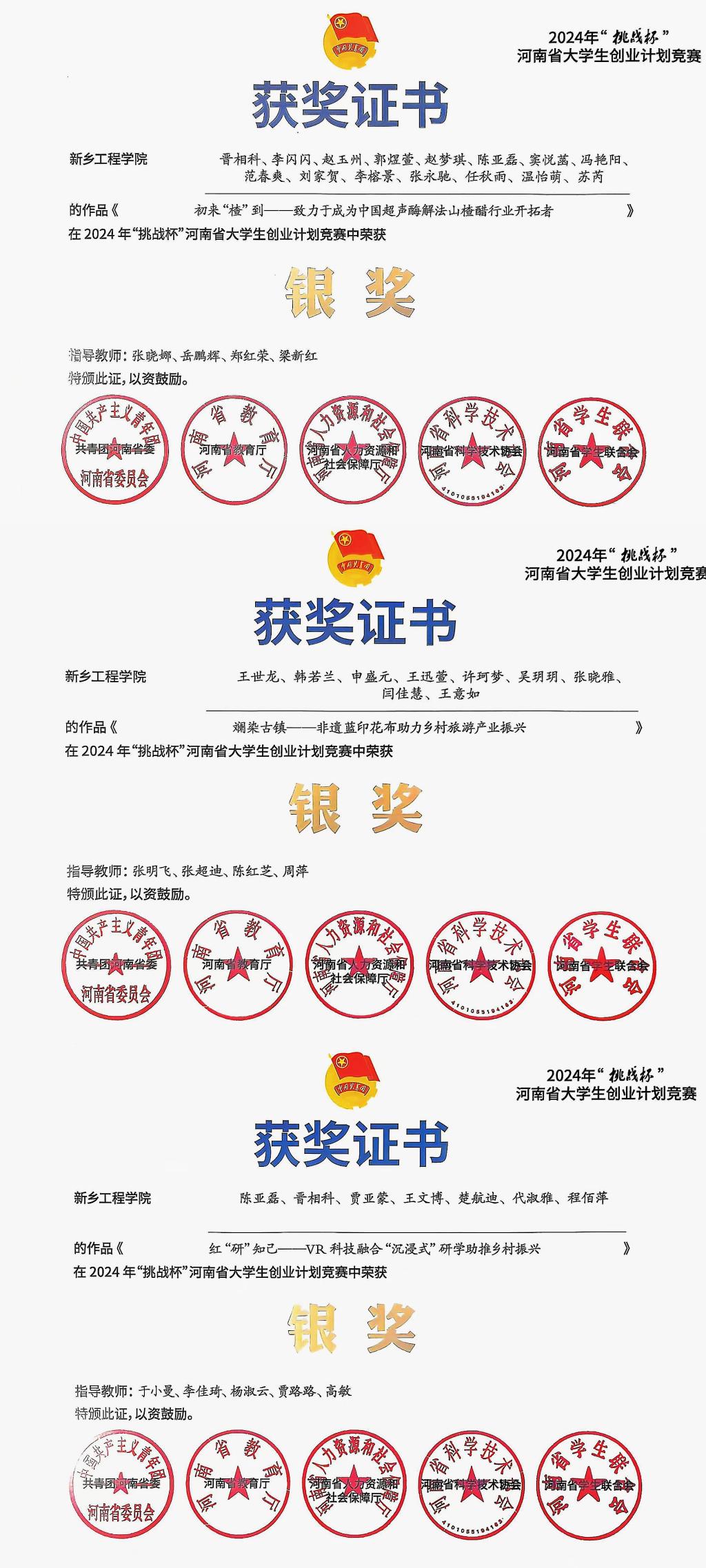 近日,由共青团河南省委、河南省教育厅、河南省人力资源和社会保障厅、河南省科学技术协会、河南省学生联合会等共同主办的2024年“挑战杯”河南省大学生创业计划竞赛已圆满落幕,获奖证书已陆续送达各高校,我校在本次竞赛中取得了骄人成绩,共有24个项目脱颖而出,荣获3项银奖与21项铜奖。