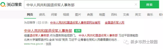第一步:打开浏览器,输入“中华人民共和国退役军人事务部”或“中华英烈网”点击搜索。(以中华人民共和国退役军人事务部官网为例)。