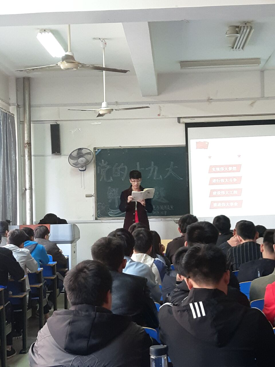 首先,张连坤同学点明了党的十九大“不忘初心,牢记使命”的主题,利用多媒体就经济、法治、生活、生态、外交、等多个方面阐明了中国已经进入了新时代,中国矛盾升级变化,生动形象的向同学们介绍了新时代中国特色社会主义这一个重要思想。最后,通过与台下同学们的提问交流,同学们也畅谈了自己对未来的感想,以及努力的方向和之后奋斗的目标。