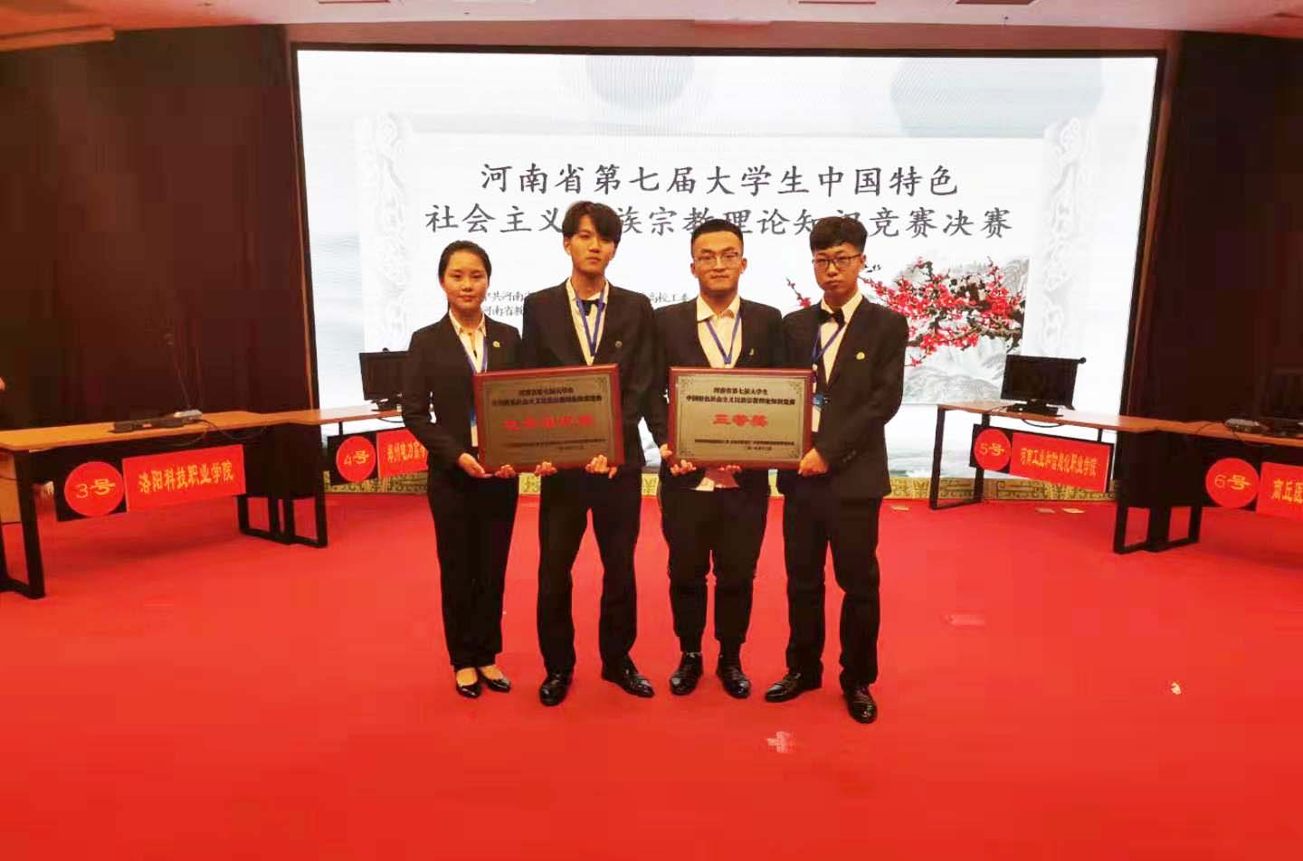 12月18日,全省第七届大学生中国特色社会主义民族宗教理论知识竞赛现场决赛在河南中医药大学举行,经过激烈角逐,我院代表队荣获团体三等奖,充分展现了我院大学生的知识素养和精神风貌,为学院赢得了荣誉。