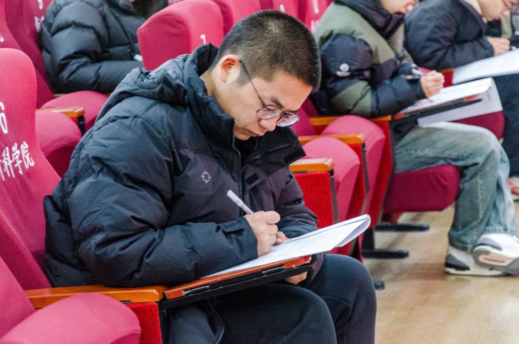 初赛采取闭卷笔试方式进行,内容主要涵盖党的二十大精神、高校辅导员职业基础知识、思想政治教育、学生管理等多方面内容,主要考察辅导员对相关知识的掌握程度以及对信息的理解、分析和破解能力。笔试现场秩序井然,全体辅导员准备充分、沉着冷静、认真作答,展现了学工队伍的良好风貌。