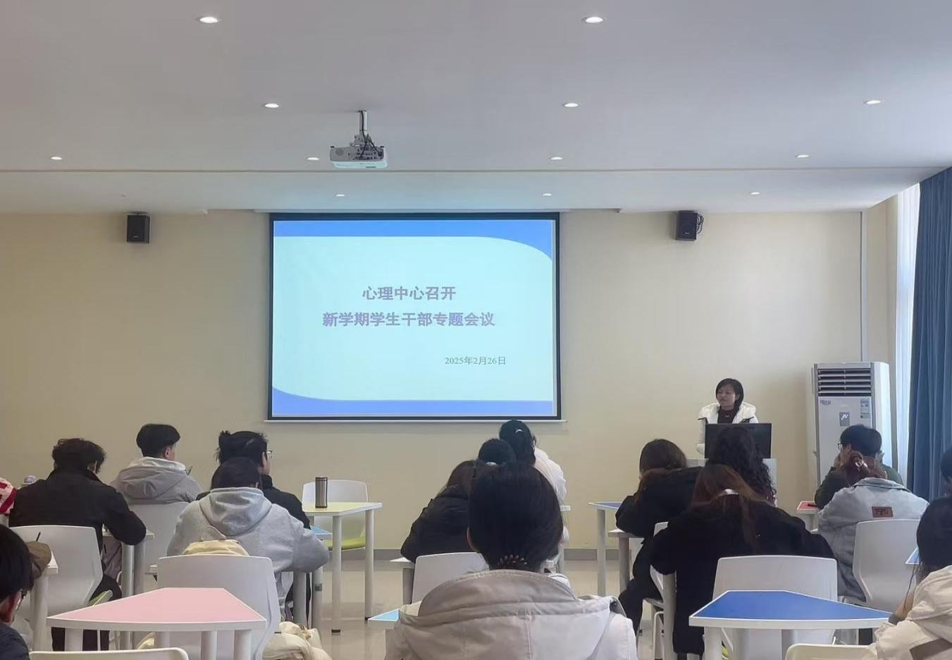 2月26日,我校心理健康教育与指导中心于综合实验楼B1-520教室成功召开了学生干部大会。参与人员有心理中心教师郭丽娟、黄栋霖、李娜、王九霞、李悦、李琛以及全体学生干部。
