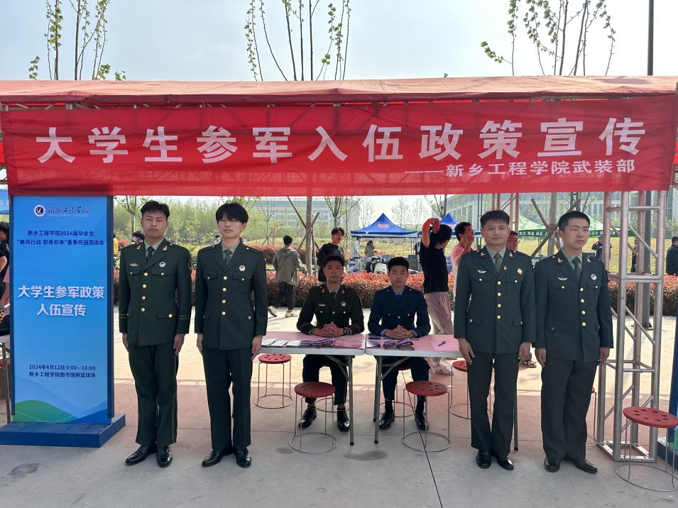 “号角正吹响,烈火燃胸膛,热血男儿已整装”,为强化学生国防观念,号召适龄青年参军入伍,4月12日,依托校春季“双选会”专场招聘会,党委武装部开展了大学毕业生征兵宣传活动,通过“精准化”“一站式”宣传咨询服务,号召应届毕业生投身国防建设。