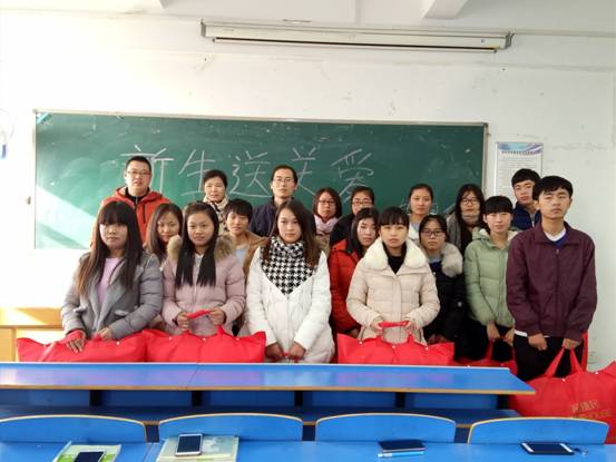 会后,参会老师为受助困难学生发放了学院冬季送关爱物品,为贫困新生送去温暖。