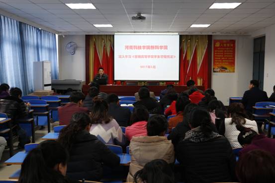 为使我院学生工作人员尽早了解《普通高等学校学生管理规定》(以下简称新版《规定》),进一步推进学生管理工作制度化、规范化建设,3月13日下午,学院召开专题学习会,认真学习新版《规定》。院党委副书记熊仁杰,相关职能部门人员以及全体辅导员参加了学习。