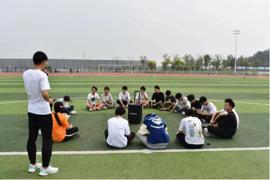 随后,心理委员到操场开展心理娱乐运动体验活动。阳光下绿茵场上同学们以昂扬的姿态挥洒青春热情,分享彼此心得体会,在音乐声中深情歌唱。