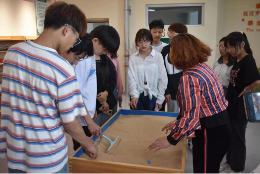 首先,信息工程学院心理专管教师张建带领心理委员参观了心理中心,向同学们详细介绍了中心各功能室及其设备,结合工作实际解答了同学们关于心理咨询预约方式、途径、流程的问题。紧接着,在心理中心咨询师焦红艳的指导下同学们体验了沙盘游戏,通过“玩”来展示语言所不能表达的内心情感世界,从而让同学们打开心扉,深入交流。