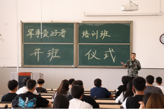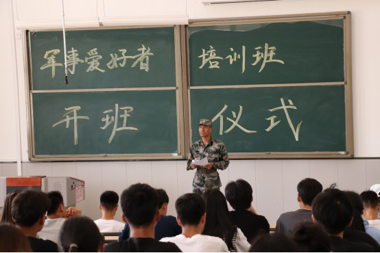 110多名军事爱好者和应征对象、10名优秀教官参加了开班仪式,仪式分为室内和室外两部分。室内活动中,大学生国防教育协会会长王聪宣读了活动策划书,武装部老师侯小栓发表开班讲话,对学员满怀期待并提出具体要求。