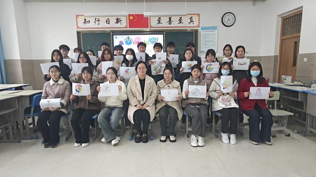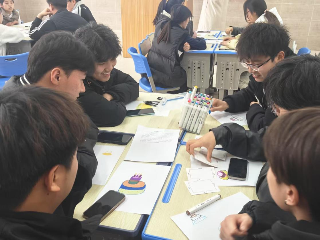 活动开始,王九霞老师通过自我介绍接龙,让同学们相互了解拉近彼此之间的距离。随后,同学们随机抽取情绪卡片进行表演,有意识地体会自我情绪的肢体变化。紧接着同学们使用画笔描绘自己心仪的蛋糕,反映出自己的精神世界底色。最后王九霞老师带领同学进行抽卡片和跳“幸福拍手舞”的环节,使同学们理解了对待一个事件有不同主观看法的道理。