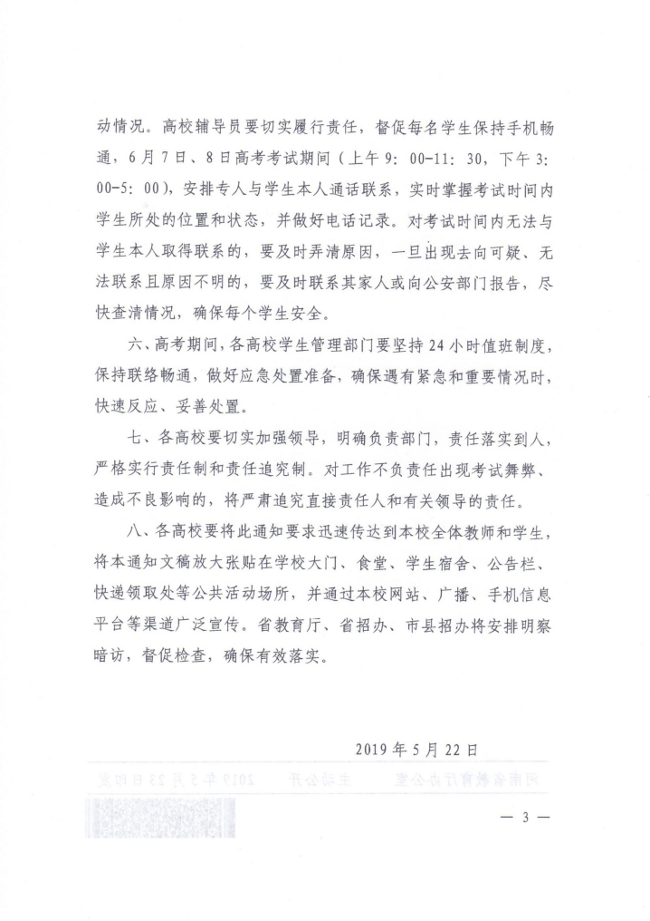 4.7-8日高考时间段,建议采用学生班级群发送实时语音、随时指定poss自拍发微信群或QQ群、电话抽查等方式,实时掌握学生位置和状态。