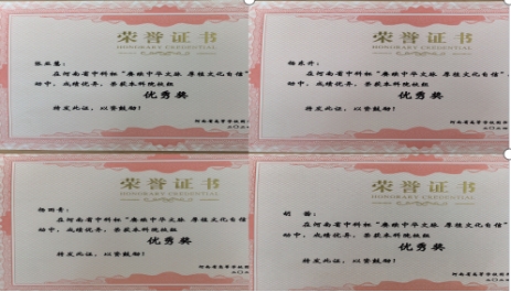 由河南省高等学校图书情报工作指导委员会主办的河南省中科杯“赓续中华文脉 厚植文化自信”知识竞赛中,我校外国语学院胡茜、机电工程学院杨雨青、经济与管理学院张亚慧、文法学院杨东升共4名同学荣获本科院校组优秀奖。