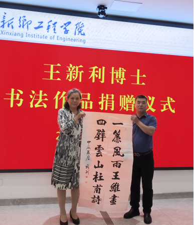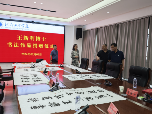 7月5日,新乡学院王新利博士向我校图书馆捐赠10幅书法作品,捐赠仪式在图书馆1113会议室举行,校长助理李帅军、艺术学院副院长邢孟志出席捐赠仪式,图书信息中心白新勤主任及全体成员参与捐赠仪式,仪式由副主任张洪坤主持。白新勤主任代表图书信息中心接受捐赠并向王新利博士表示感谢,同时向王新利颁发了捐赠证书和收藏证书。