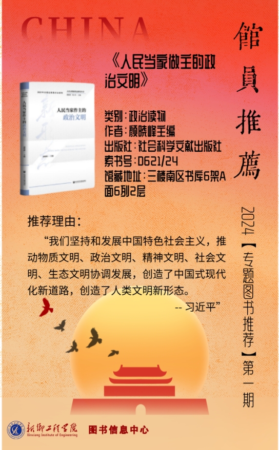 国庆将至,我们满怀欣喜,歌颂祖国安定繁盛。值此佳节,图书馆员们精心挑选了一系列书目。希望通过文字的力量,让读者们在国庆这个特殊的日子里,欢庆之余仍有书香为伴,点亮精神灯塔,开启一场思想之旅,探寻关于国家、民族、梦想的永恒话题。