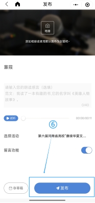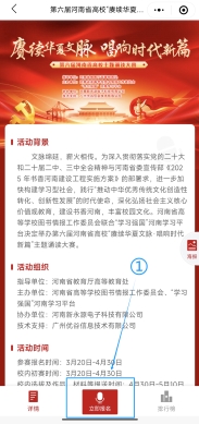 1.初赛:初赛依托专属诵读平台广泛征集作品。初赛期间,师生须通过线上诵读平台在线报名、参与诵读并上传作品(可从“学习强国”“优谷文库”等资源库中选择符合主题的作品诵读),同时挖掘优秀作品,积极向“学习强国”河南学习平台投稿(详见附件2)。
