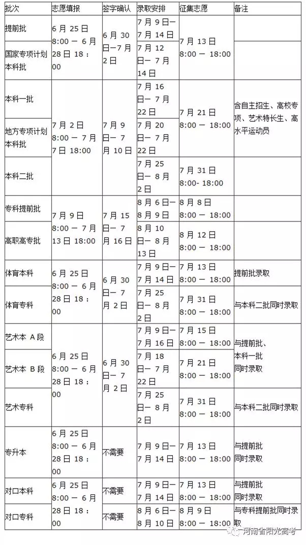 十五、河南省2017年普通高校招生志愿填报及录取时间安排