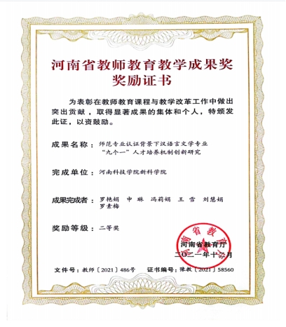 文法学院教师罗艳娟获河南省教师教育教学成果奖二等奖