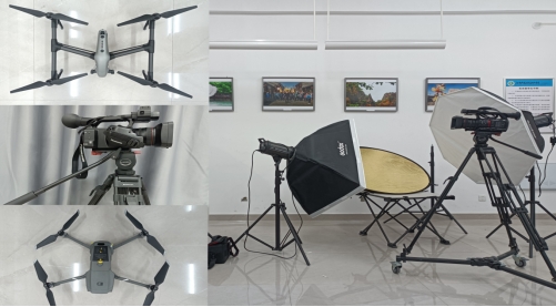 新闻摄影摄像实训室:主要承担新闻摄影摄像、新闻采访、新闻写作、新闻编辑等课程的实践教学任务,配有高清数字摄像机、单反相机、无人机等拍摄器材、图像工作站等设施,培养学生的拍摄、采写、视频剪辑等实践技能。该实训室还参与学校内宣、外宣和大型活动的拍摄工作。
