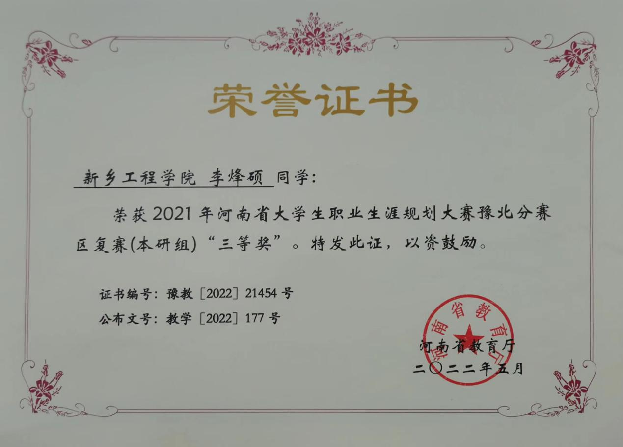 在校期间先后担任班长、年级长、学生会主席等职务。连续八次获得校奖学金、连续2次获得国家励志奖学金、荣获河南省优秀学生干部、河南省优秀毕业生称号。