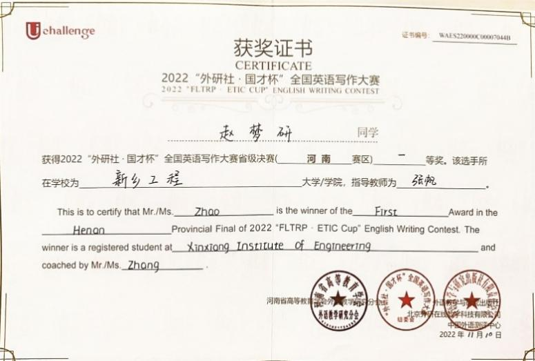 “外研社·国才杯”全国英语写作大赛(河南赛区)