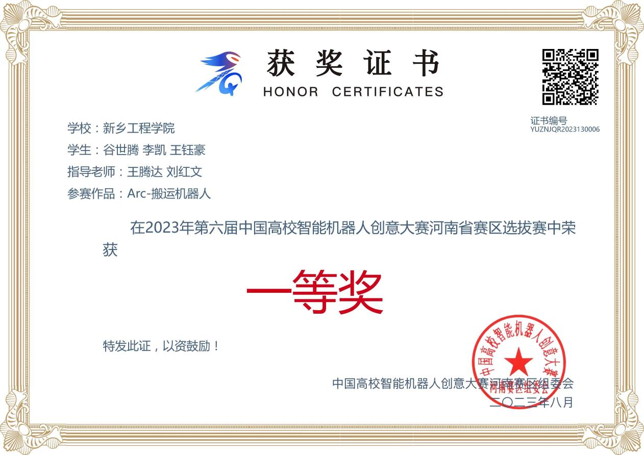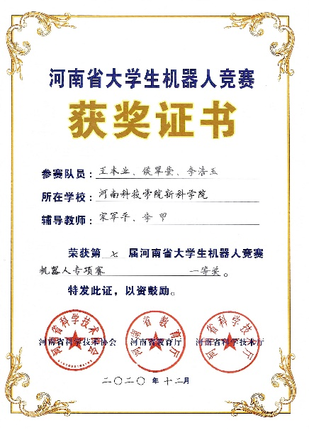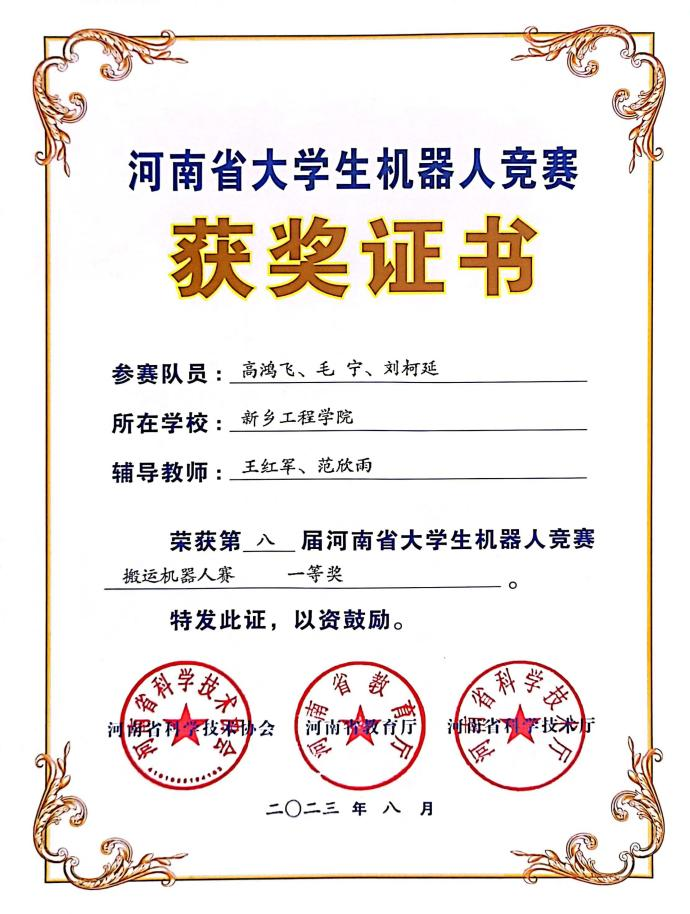 第六届中国高校智能机器人创意大赛河南赛区一等奖