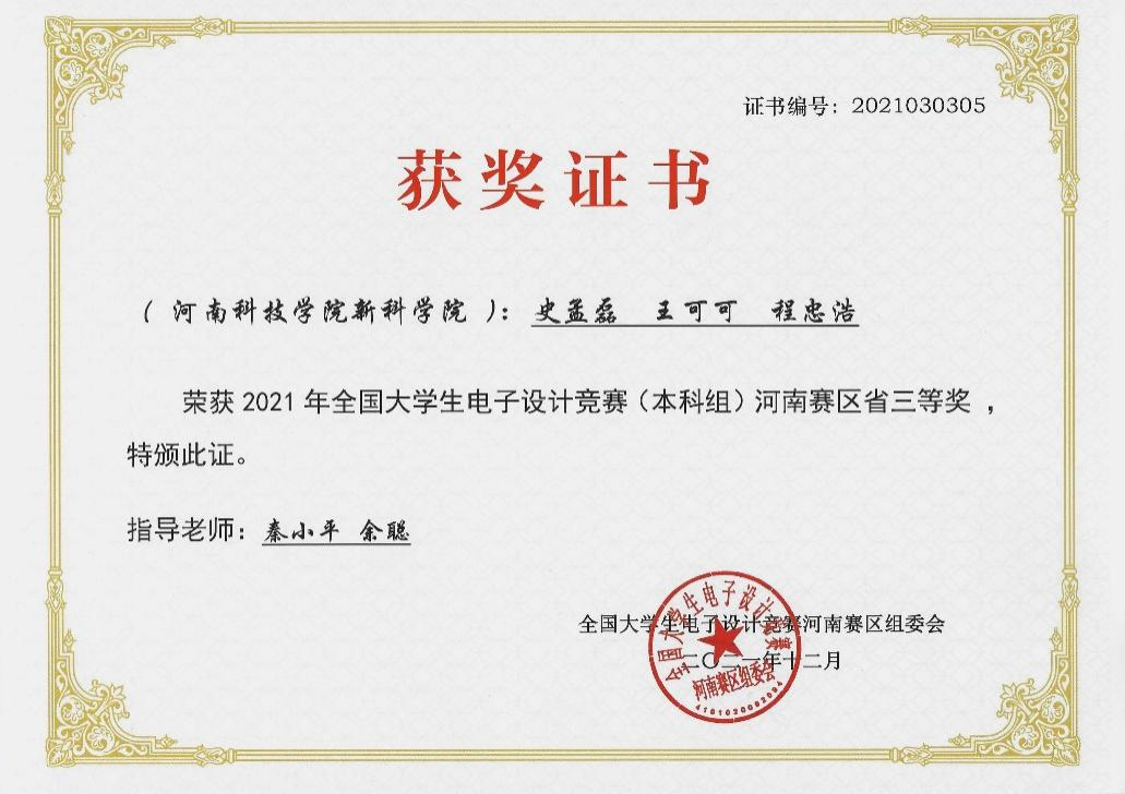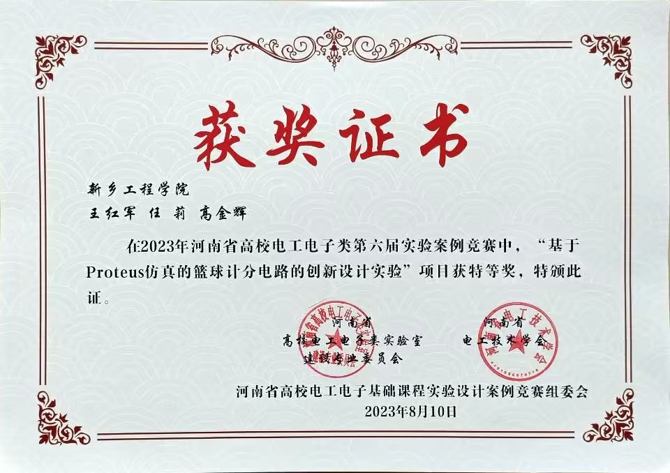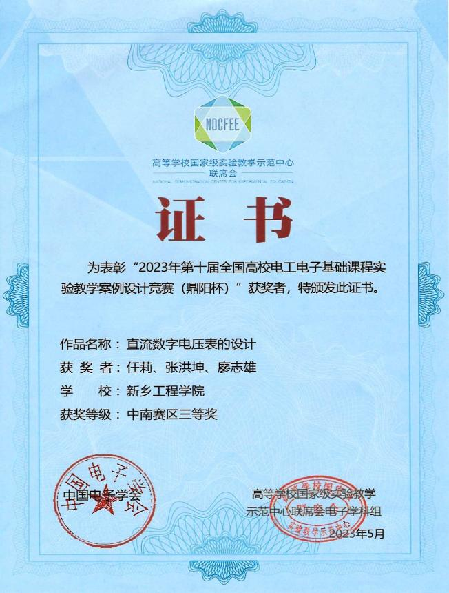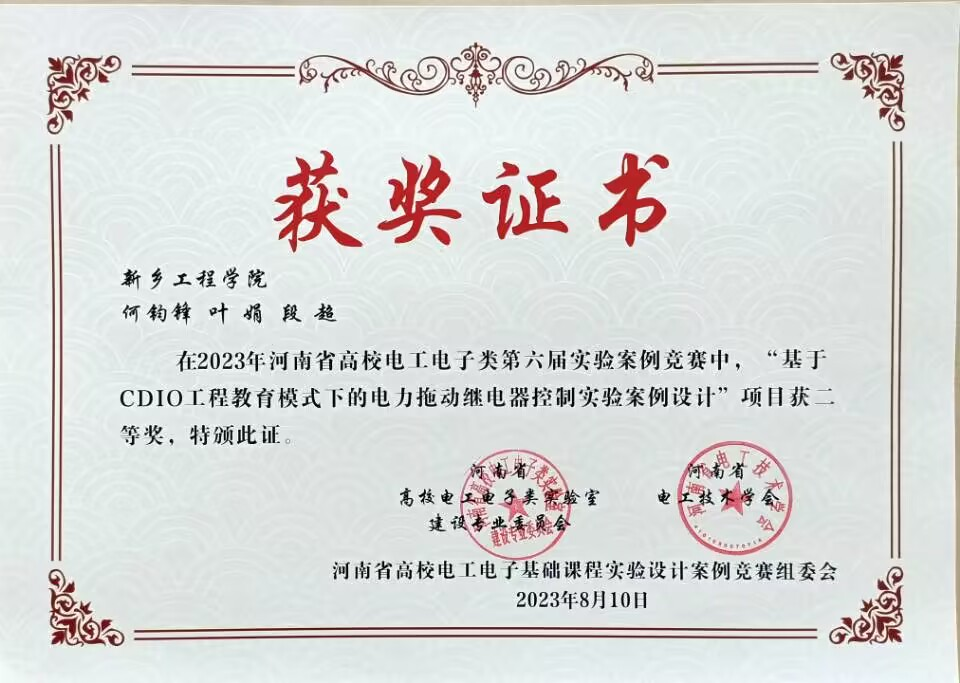 第六届河南省高校电子电工实验案例竞赛二等奖