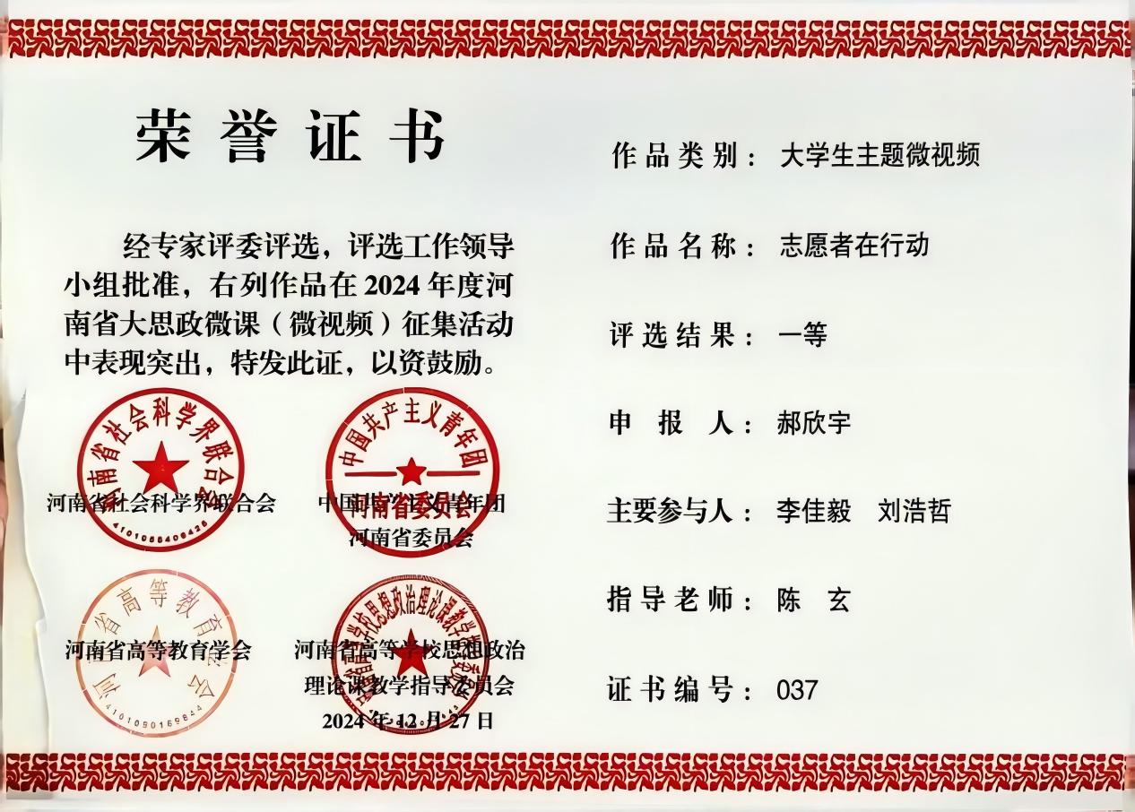在校期间学习努力、工作踏实,取得了八次一等奖学金、两次国家励志奖学金、一次国家奖学金的优异成绩。现任新乡市凤泉区办公室科员。