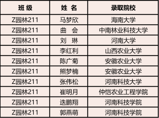 在新工的校园里有这样一个班级他们率真可爱、捷报频传,他们一直在争做“优秀新工人”他们的班级你猜到了吗?没错就是Z园林211班,2023考研已有10名同学收到硕士研究生拟录取通知,录取率高达60%,以优异的成绩交出了令人满意的答卷,他们分别是: