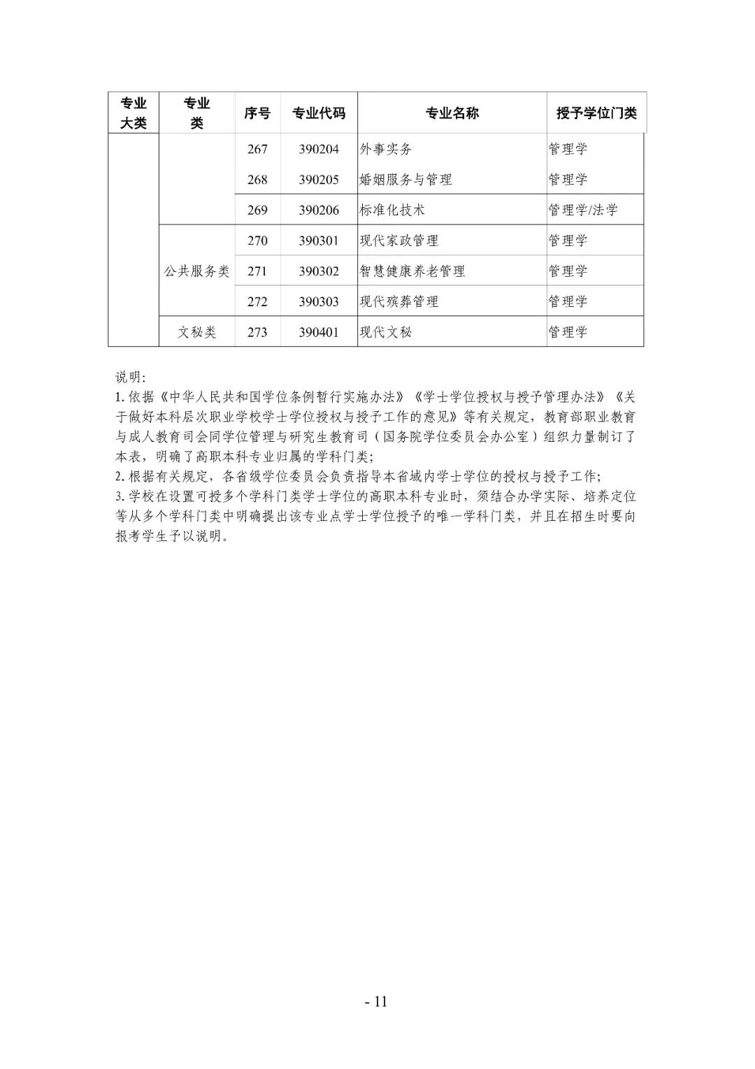 依据《中华人民共和国学位条例暂行实施办法》《学士学位授权与授予管理办法》《关于做好本科层次职业学校学士学位授权与授予工作的意见》等有关规定,教育部职业教育与成人教育司会同学位管理与研究生教育司(国务院学位委员会办公室)组织力量制订了本表,现予以发布。