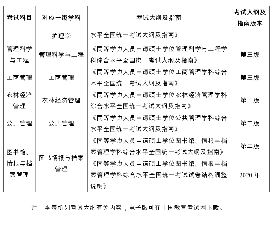 申请学科在附件2所列学科范围内的同等学力人员,须参加全国统一组织的学科综合水平考试,考试科目、所用考试大纲及指南见附件2。